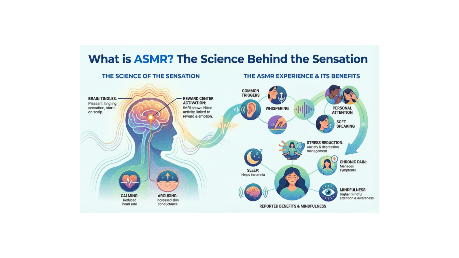 Research in Cognitive Science shows that when people experience ASMR, their brains show increased activity in areas responsible for attention and empathy whilst stress responses dial down.